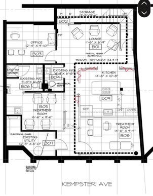 Street level entrance with a private parking lot at the back of the building. The ground floor features a cozy reception waiting area with a fireplace, a barrier- free bathroom, seven closed offices of various sizes and an admin area behind the reception.